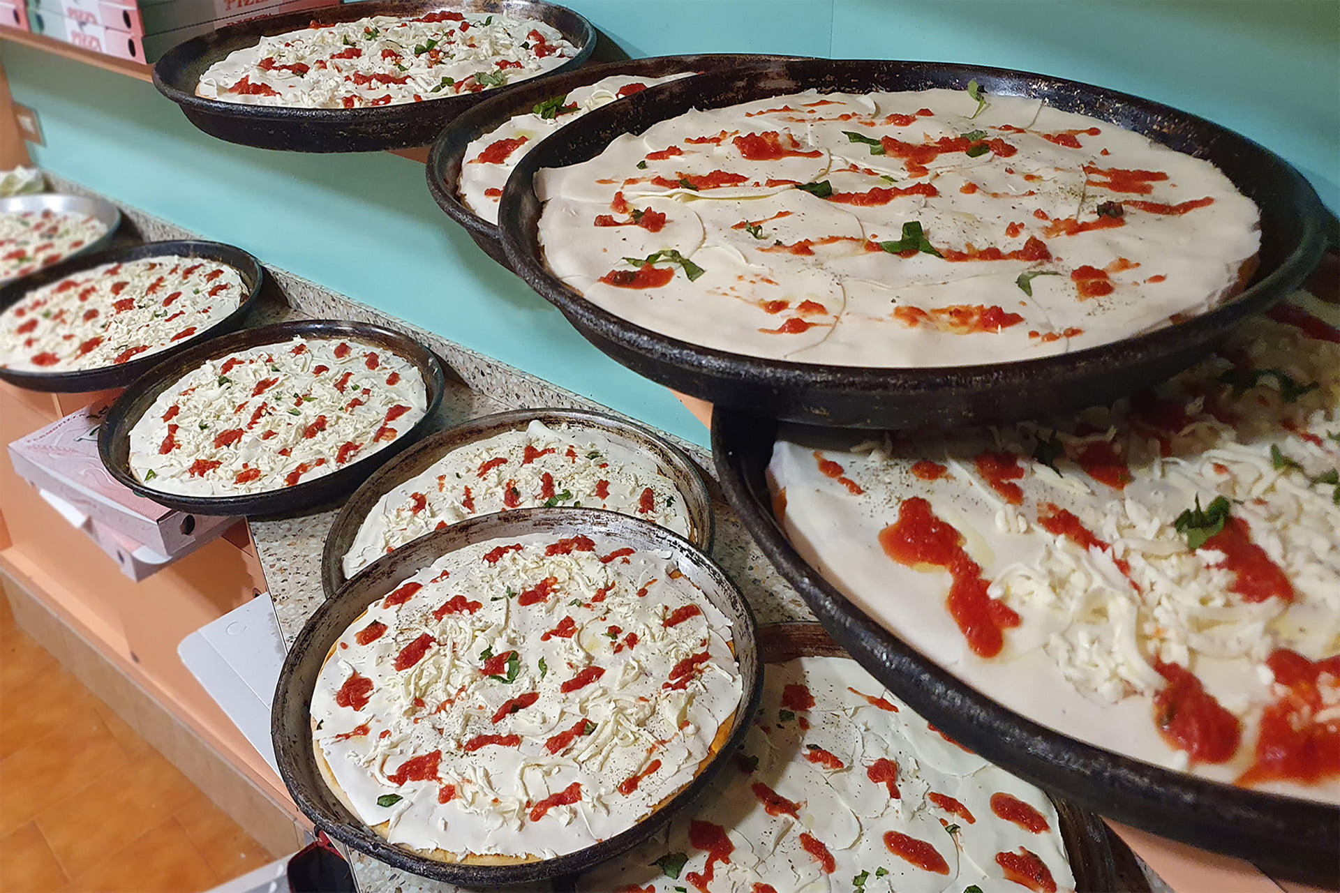La nostra pizzeria è specializzata dal 2009 nella preparazione di pizza al trancio, pizze tonde classiche e pizza al metro, tutte rigorosamente ABBONDANTI, fatte a mano con ingredienti freschi e cotte in forno a legna.