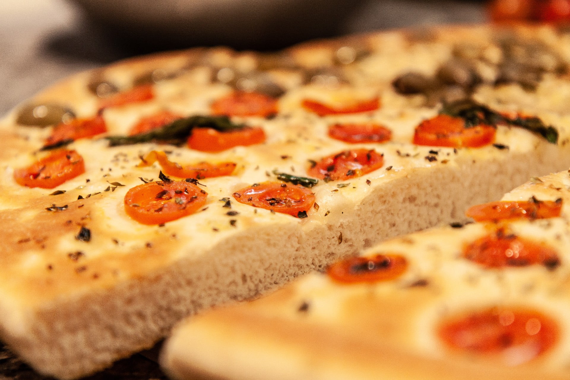 La nostra pizza al trancio è perfetta per una pausa pranzo veloce o per una serata in famiglia o con gli amici.